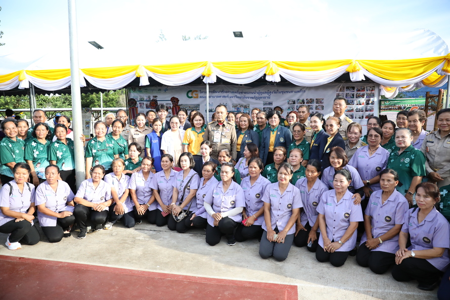 ต่อมาในช่วงบ่าย ได้เดินทางไปยังศูนย์สาธารณสุขมูลฐานชุมชนบ้านดอนหาด ตำบลสามพร้าว เพื่อเยี่ยมชมการดำเนินงานโครงการพัฒนาท้องถิ่นของมหาวิทยาลัย ซึ่งครอบคลุม 4 มิติสำคัญ ได้แก่